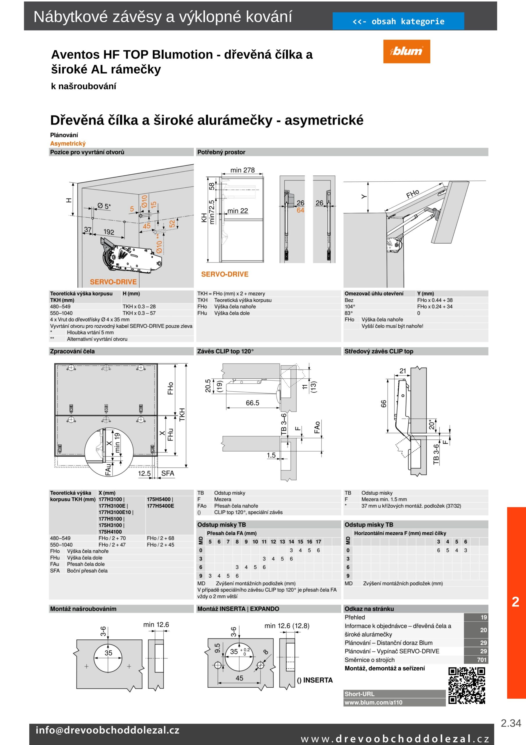 Asymetrická čela (větší čelo musí být nahoře): TKH teoretická výška korpusu= výška horního čela (mm)x 2 (včetně spár)