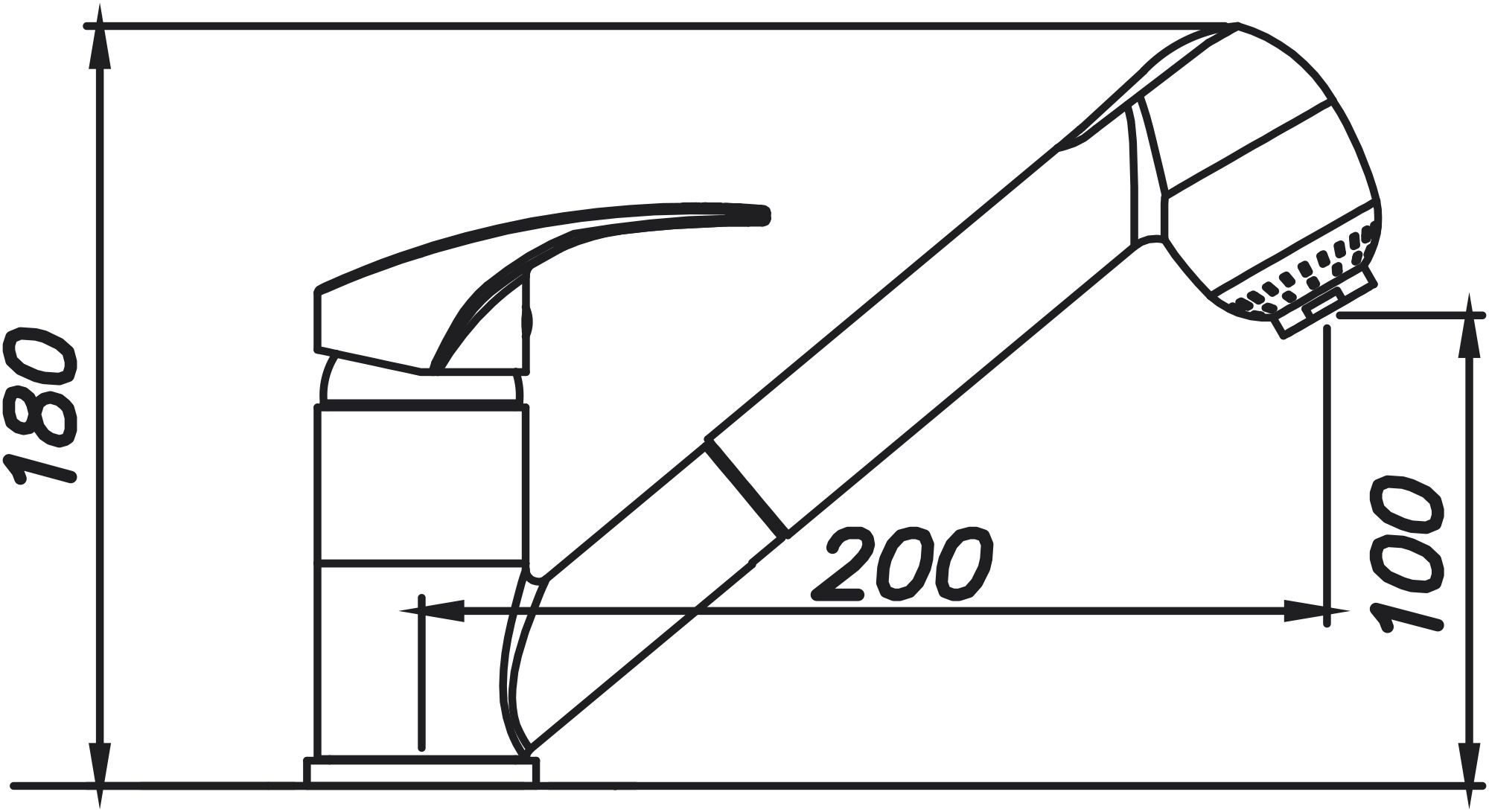 Tlaková dřezová baterie, provedení Granblack 30, rozměr 180 x 200 mm, se sprchou.Součástí baterie je kompletní příslušenství k montáži. Není třeba nic dokupovat.