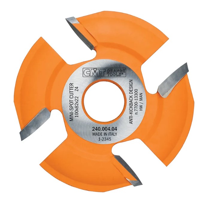 CMT kotouč na zásmolky s teflonovým oranžovým povrchem je vyroben z jakostní oceli. Tělo je osazeno 4 tvrdokovovými zuby, které garantují dlouhou životnost. D100x22x8 R30mm Z4. Určeno pro lamelovací frézky.