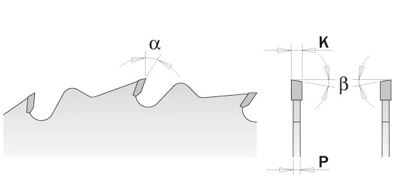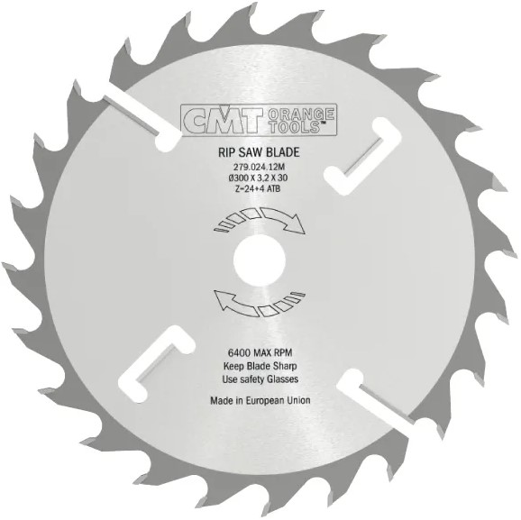 Pilový kotouč pro podélné řezy. Kotouč se střídavě šikmými zuby a speciálními vyklizovacími zuby do mokrého a suchého dřeva. Ideální pro formátovací pily, kotoučové pily nebo rozmítací pily. Tvrdokovové vyklizovací zuby omezují kontakt materiálu s tělem kotouče. Strojní posuv.