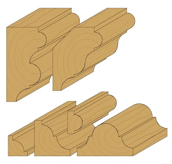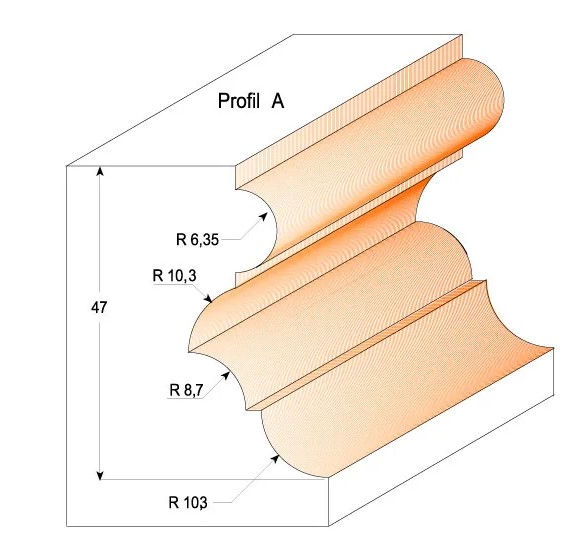 Použití: S víceprofilovými frézami CMT můžete tvořit mnoho profilů. Jednoduše nastavte výšku frézy pro vytváření klasických profilů jedním průchodem. Nebo udělejte několik průchodů pro vytvoření komplikovanějších a zdobnějších profilů.