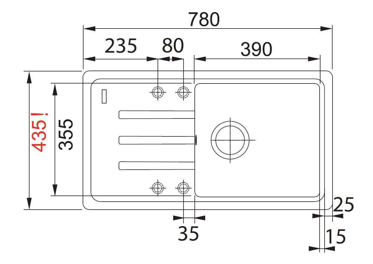 Dřez: 390 × 355 × 200 mm
