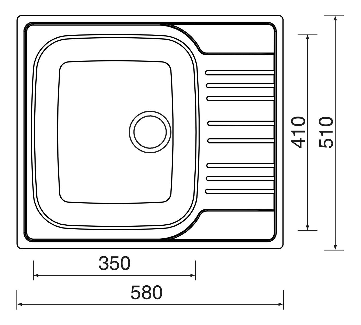 Rozměr dřezu: 580 x 510 mm