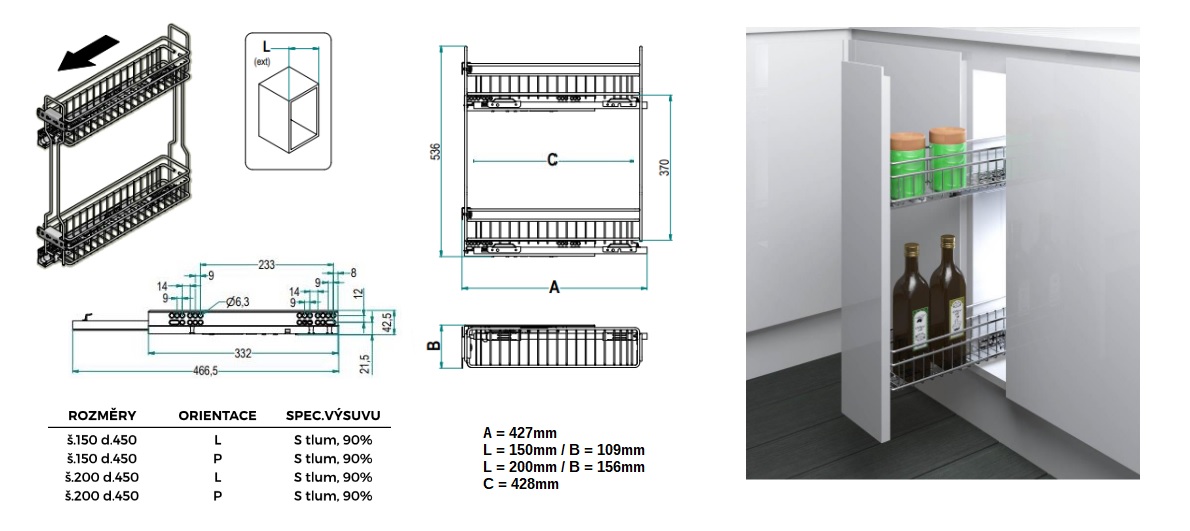 je určen pro kuchyňské a koupelnové skříňky o šířce 200 mm
