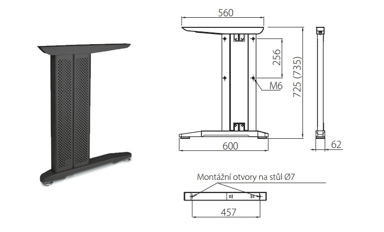 · otvory v noze zajišťují neviditelné umístění kabelů (za použití kabelové průchodky v desce stolu)