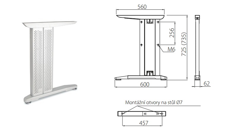 · otvory v noze zajišťují neviditelné umístění kabelů (za použití kabelové průchodky v desce stolu)