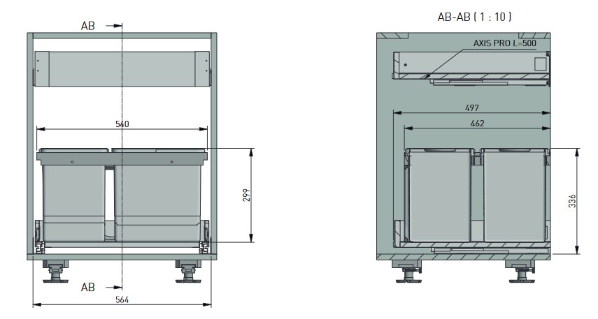 Pro korpus šíře 600mm, montáž do zásuvky.