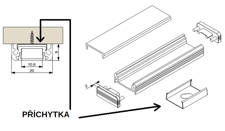 LED profil AL RW příchytka nerez