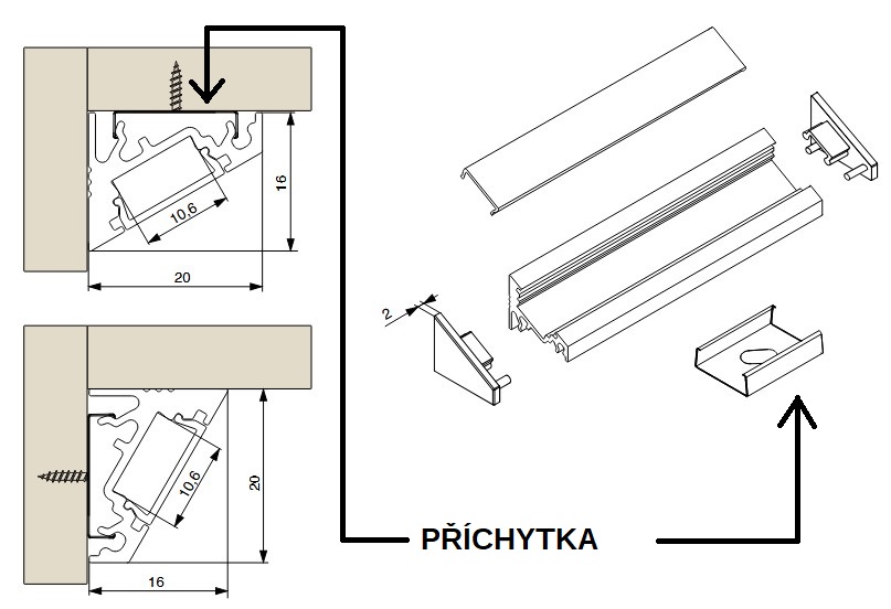 Kategorie - Lišty pro LED pásky, Nábytkové kování, Osvětlení