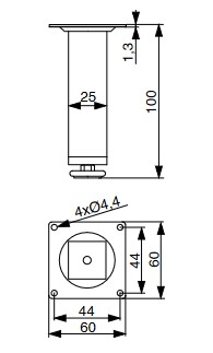 Ocelová nábytková nožka hranatá s regulovatelnou délkou.