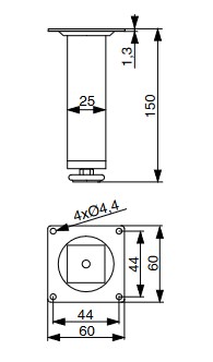 Ocelová nábytková nožka hranatá s regulovatelnou délkou.