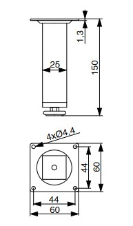 Ocelová nábytková nožka hranatá s regulovatelnou délkou.