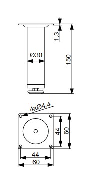 Ocelová nábytková nožka kulatá s regulovatelnou délkou. Maximální zatížitelnost 45 kg na nohu.