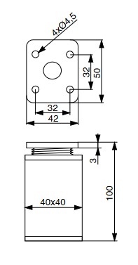 Nožka H100mm aluminium povrch nerez 40×40