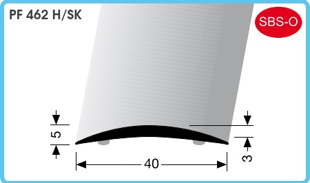 Přechodový profil 40 mm s nivelací 3mm, samolepící. K ukončení nebo k plynulému přechodu mezi podlahovými materiály s maximálním rozdílem výšek do 3 mm.