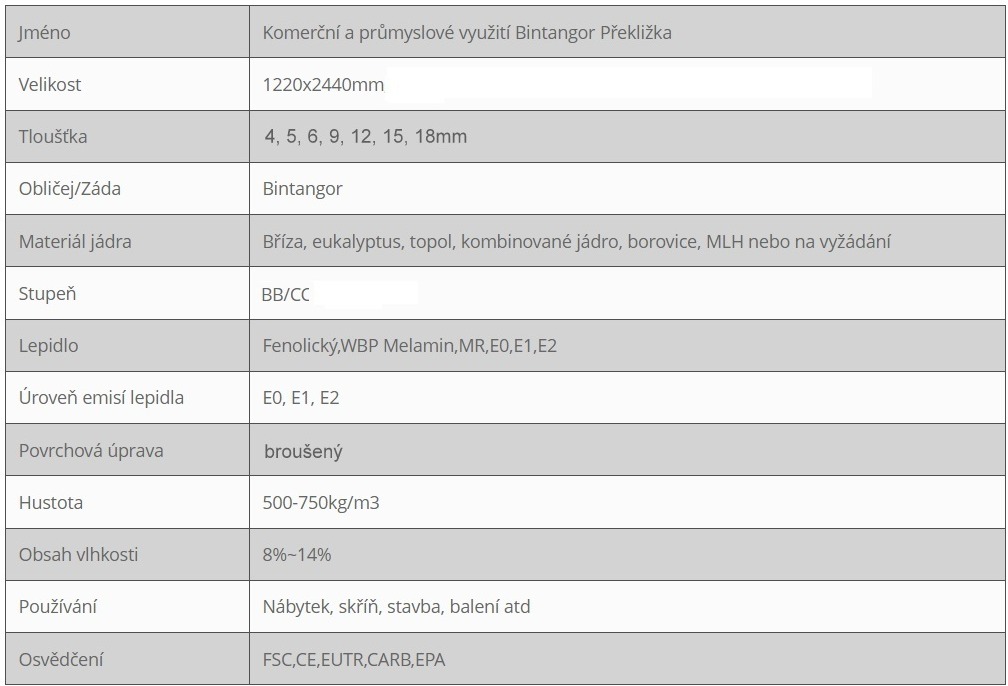Překližky Bintangor, známé taky pod názvem MERANTI