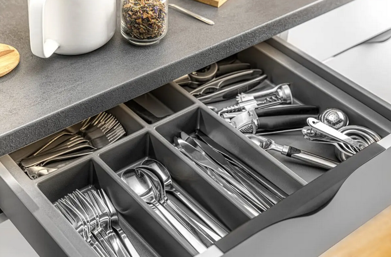 Zásuvkové vložky Axispace, vyrobené z vysoce kvalitního plastu, vám umožní efektivně uspořádat interiér kuchyňských zásuvek. Díky speciálnímu členění můžete snadno oddělit a uspořádat lžíce, nože, vidličky i další užitečné kuchyňské doplňky. Vizuální efekt však není jedinou výhodou tohoto produktu. Vložky jsou velmi prostorné a praktické, takže máte vše ihned po ruce, což je pro každého, kdo vaří, nesmírně důležité. Nabídka zahrnuje pořadače různých velikostí.