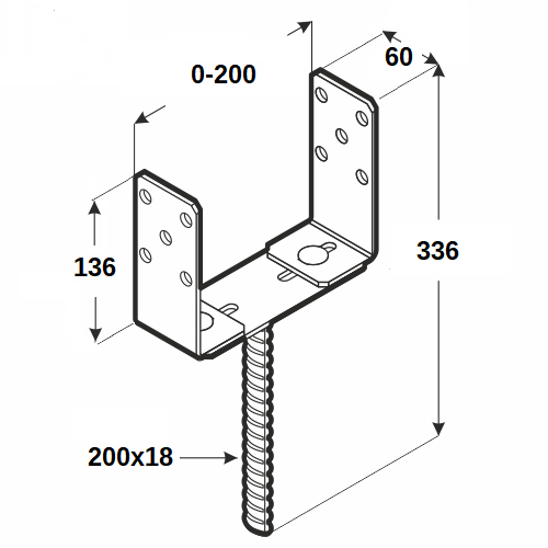PSRU 60-200 Patka sloupku typu „U“ stavitelná 60-200x136x4,0
