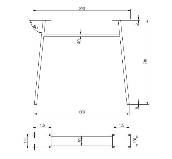 Stolová podnož INDUSTRIA-H40 černá 710x820x40