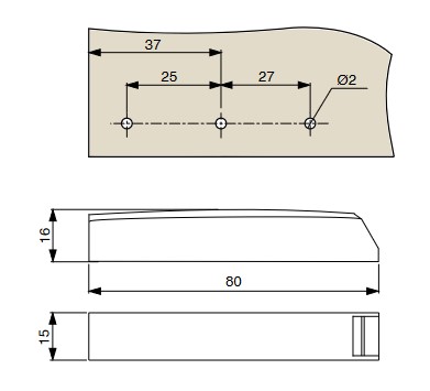 Adaptér pro píst bezúchytkového otevírání dveří pro instalaci dovnitř korpusu bez nutnosti vrtání do hrany.