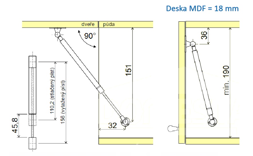 vhodný pro použití k výklopným dvířkům zpravidla horních skříněk.