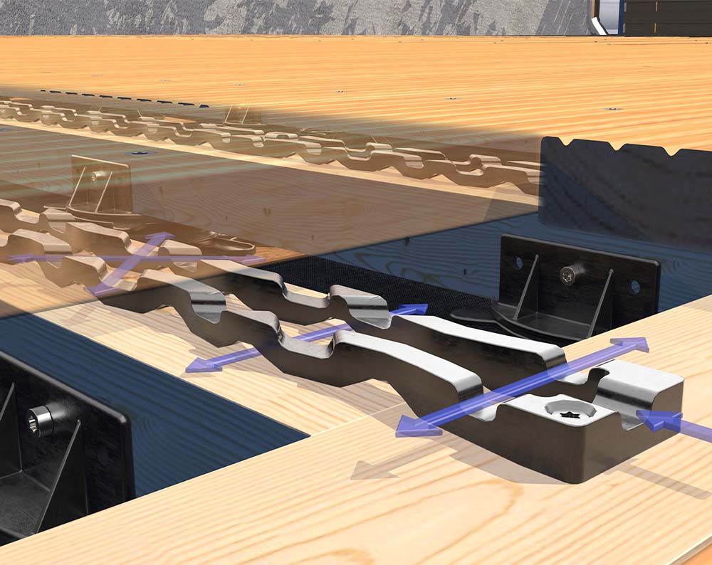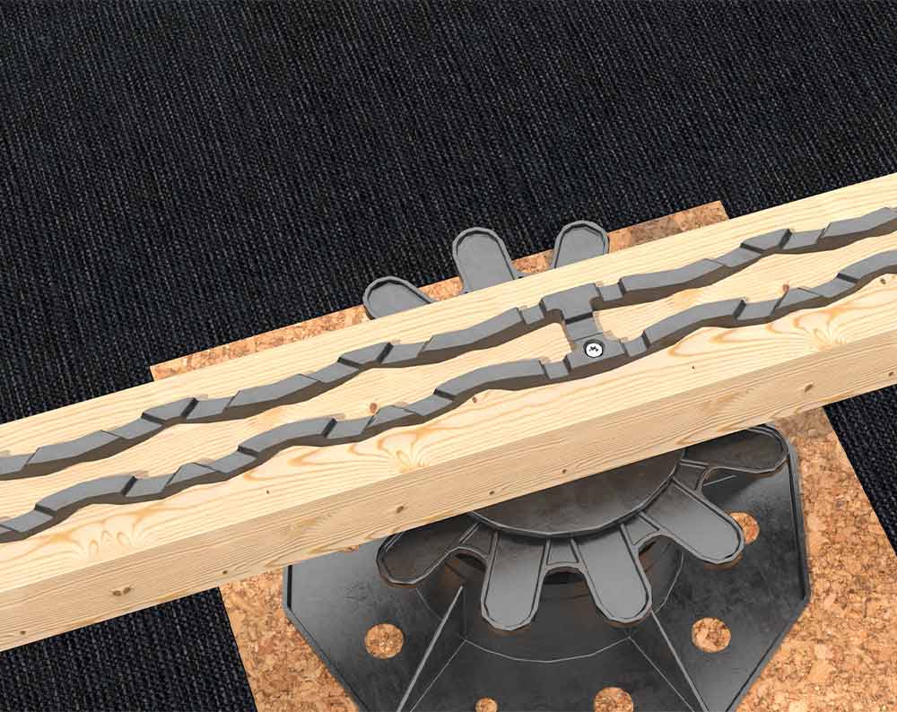 – Terasová lišta vytváří 7 mm širokou mezeru mezi nosníkem a spodní stranou terasového prkna.