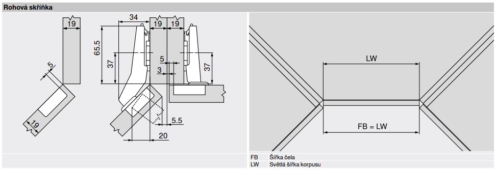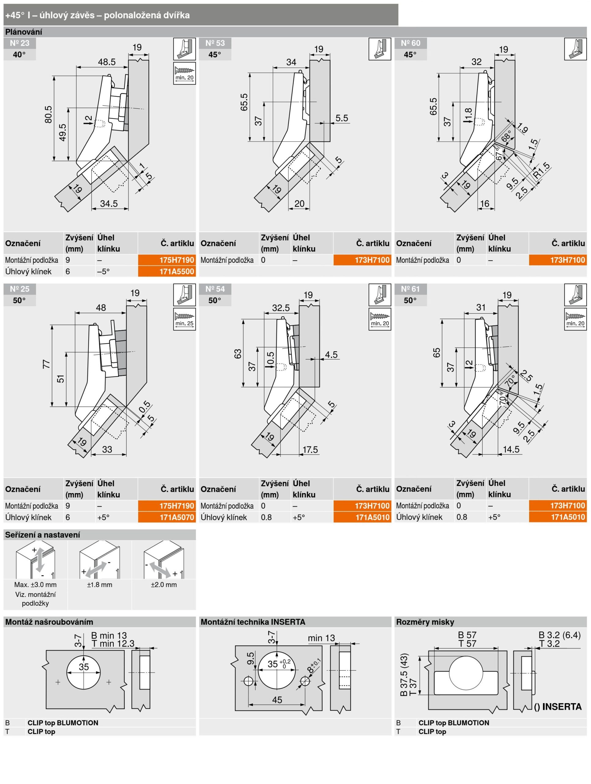 Blum závěs/pant na úhel 45° s integrovaným Blumotion/tlumením – Tlumení lze deaktivovat