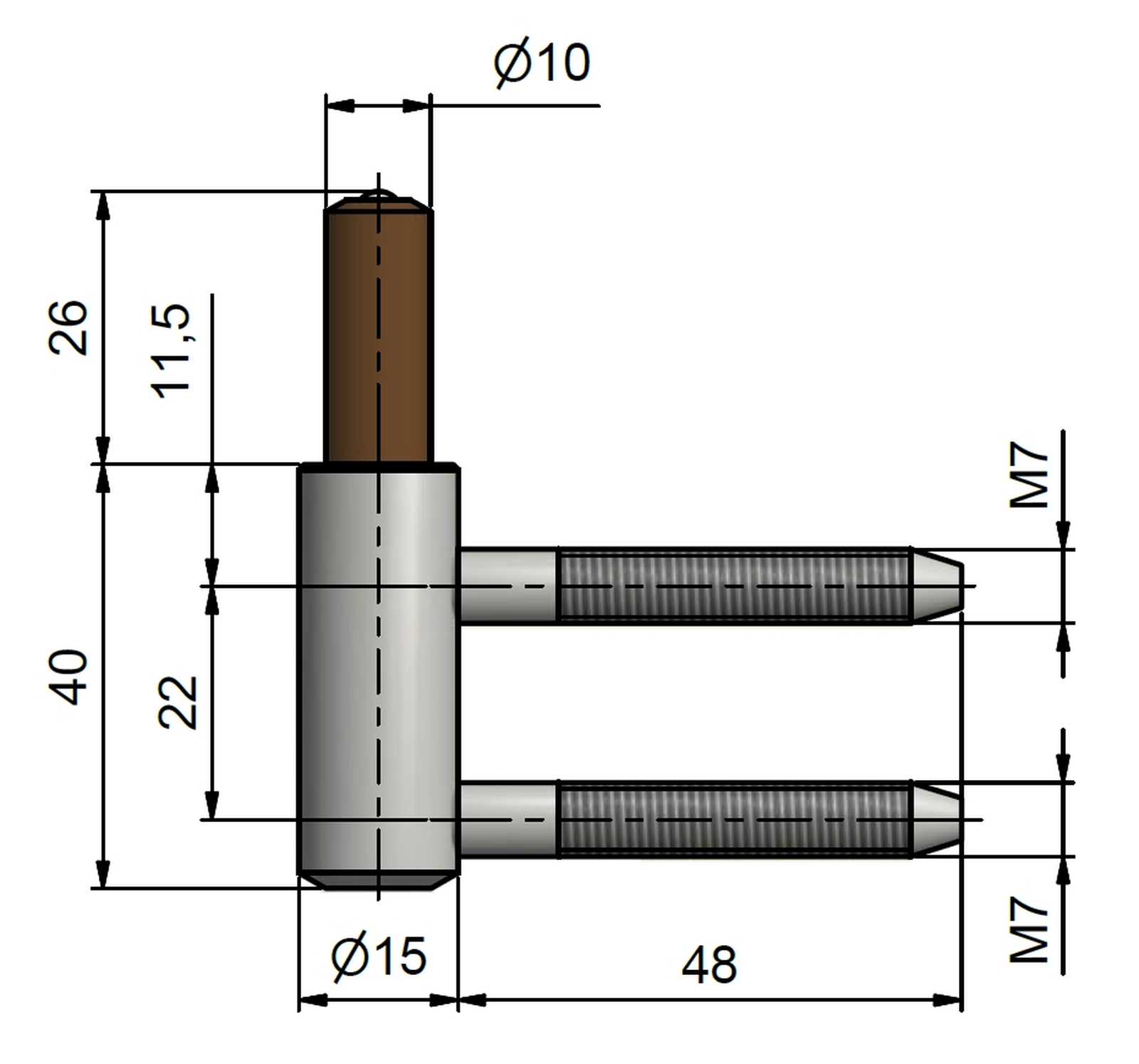 Spodní díl závěsu do dřevěné obložkové zárubně (do vložky 22/7). Pouzdro z plastické hmoty na čepu a kulička zajišťují snadné otáčení závěsu.