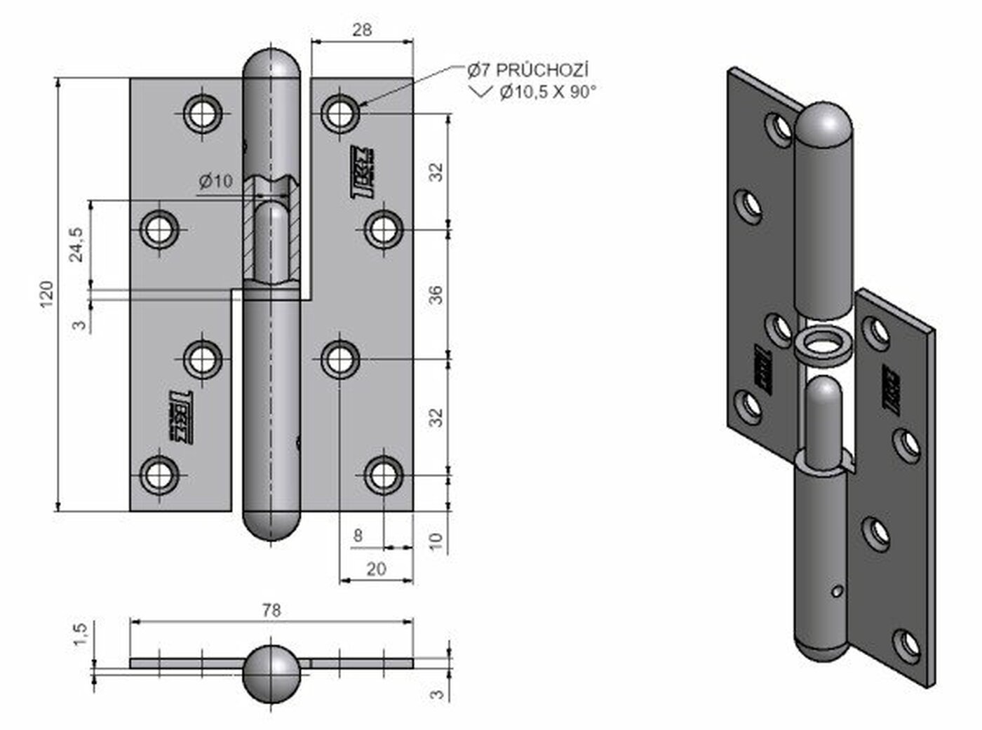 K otočnému spojení dveří bez polodrážky s dřevěnou zárubní. Závěs doporučujeme přišroubovat až po provedené povrchové úpravě dveří a zárubně.