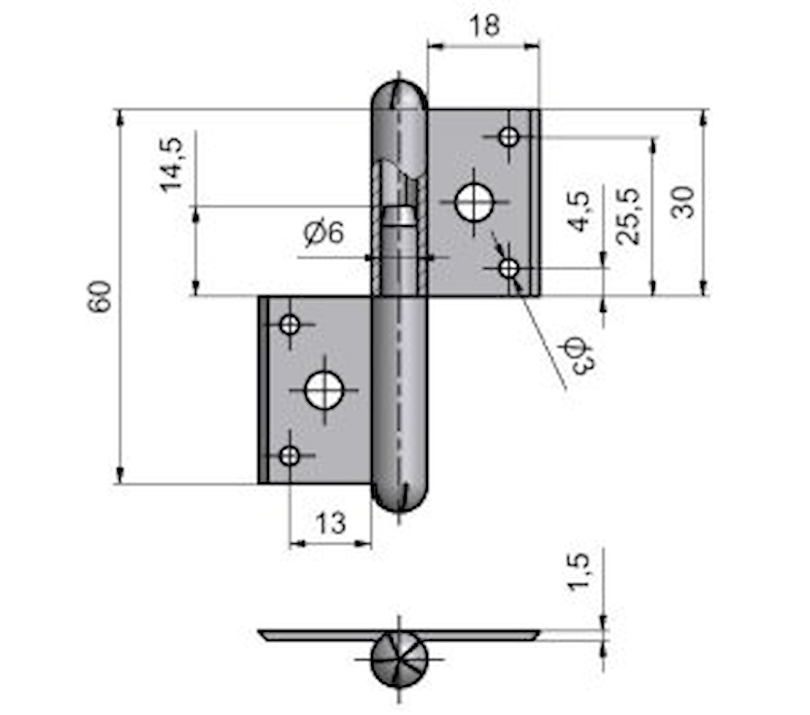 Závěs k zašroubování do okenního rámu a křídla s volně vloženým čepem, hřeb zabraňuje pootočení závěsu. Po dohodě na zakázku Vám na tyto panty vyrobíme kovové ozdobné návleky.